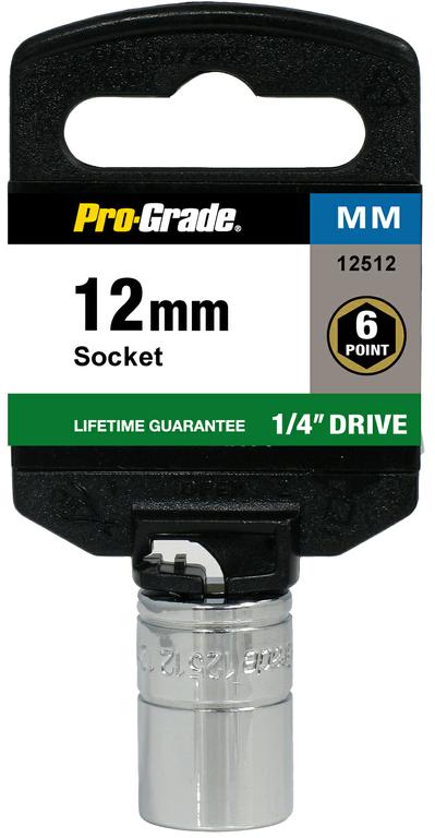 Pro-Grade 1/4in Drive 6 Pt. 12mm Standard Socket, 12512