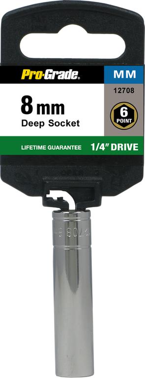 Pro-Grade 1/4in Drive 6 Pt. 8mm Deep Socket, 12708
