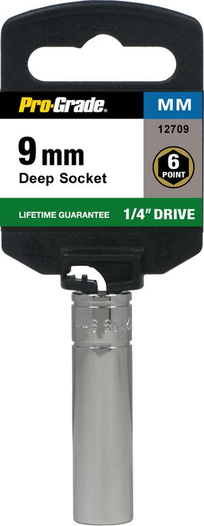 Pro-Grade 1/4in Drive 6 Pt. 9mm Deep Socket, 12709