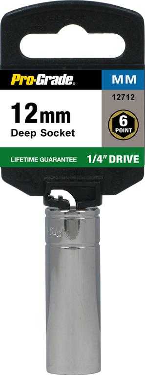 Pro-Grade 1/4in Drive 6 Pt. 12mm Deep Socket, 12712