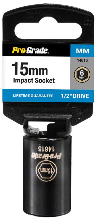 Pro-Grade 1/2in Drive 6 Pt. 15mm Impact Socket, 14615