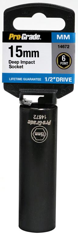 Pro-Grade 1/2in Drive 6 Pt. 15mm Deep Impact Socket, 14672
