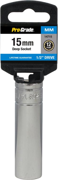 Pro-Grade 1/2in Drive 12 Pt. 15mm Deep Socket, 14715