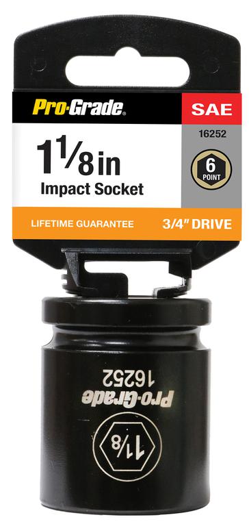 Pro-Grade 3/4in Drive 6 Pt. 1-1/8in Impact Socket, 16252