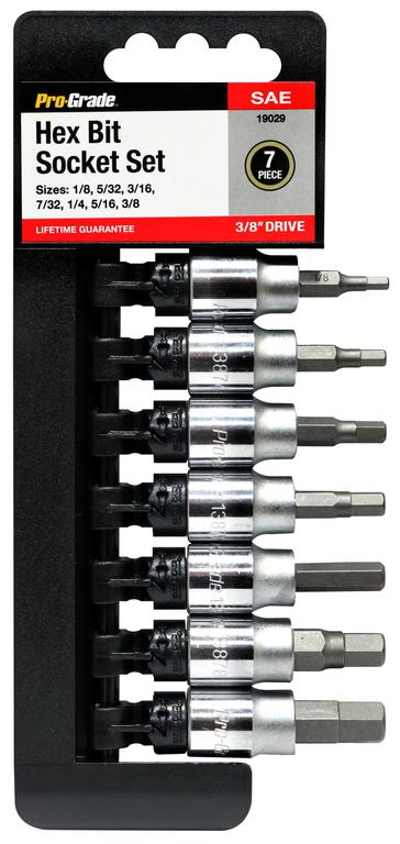 Pro-Grade 7-Piece 3/8"e; Drive SAE Hex Bit Socket Set with Rail, 19029