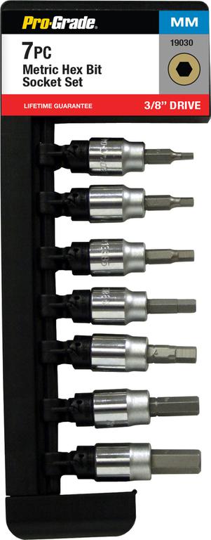 Pro-Grade 7-Piece 3/8"e; Drive Metric Hex Bit Socket Set with Rail, 19030