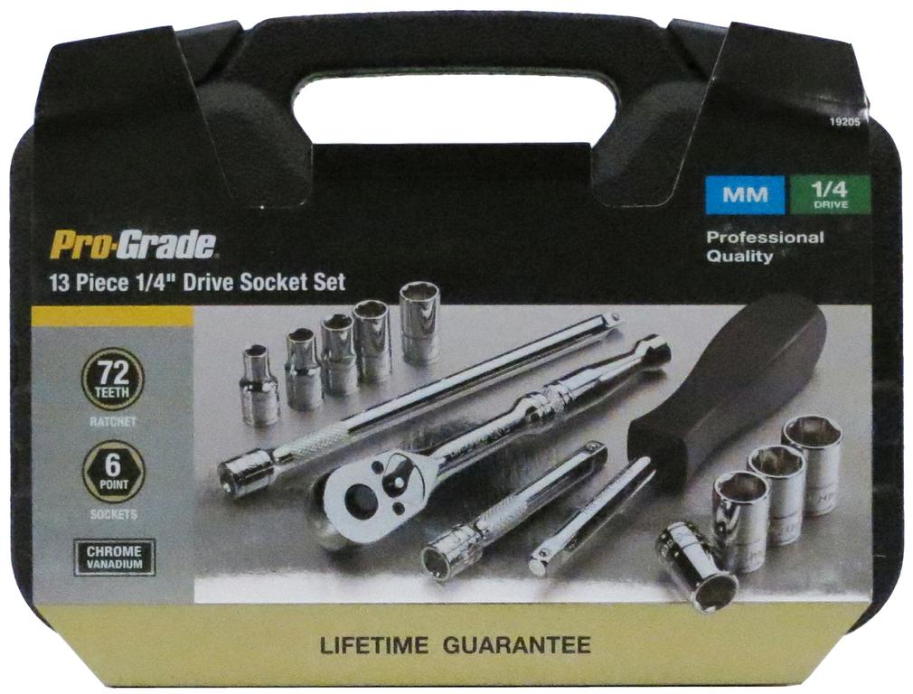 Pro-Grade 13-Piece 1/4"e; Drive Metric Mechanics Tool Set, 19205