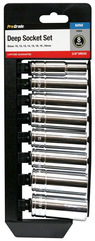 Pro-Grade 8-Piece 3/8"e; Drive Metric Deep Socket Set with Rail, 19304
