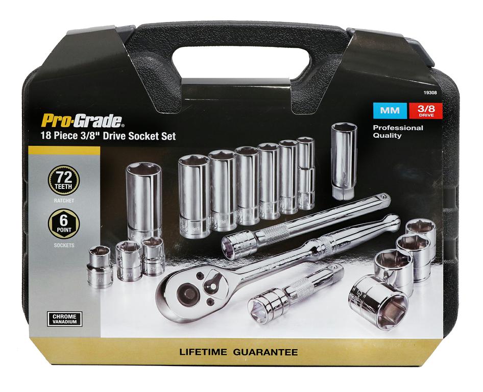 Pro-Grade 18-Piece 3/8"e; Drive Metric Mechanics Tool Set, 19308