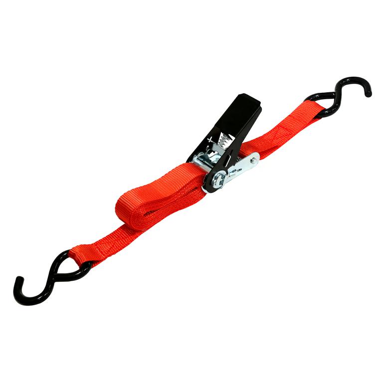 This ratcheting tie-down strap is tested to 1,000lbs break strength and carries a 333lbs working load limit.