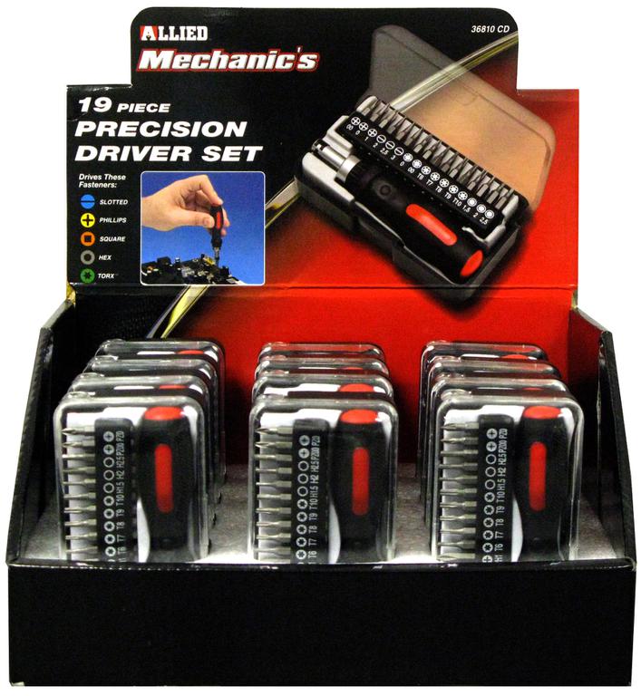 Allied International's 19-piece Precision Screwdriver Set with Slotted, Phillips, Square, Hex, and Torx* Bits, #36810CD