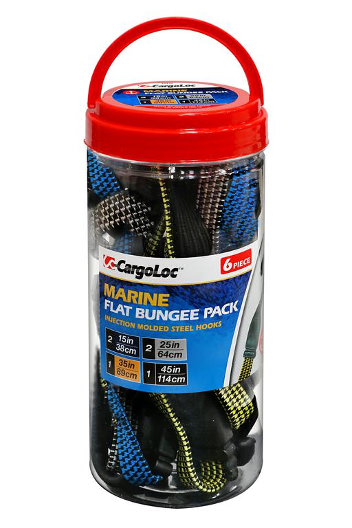 CargoLoc 6 Pc Marine Flat Bungee Cord Assortment with Plastic Molded Steel Hooks, 42490