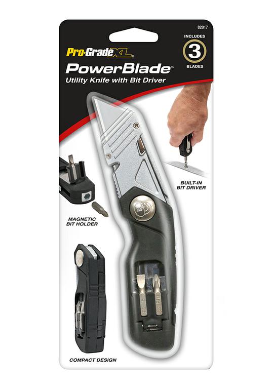 Pro-Grade PowerBlade Folding Utility Knife with 3 SK5 Blades and 2 S2 Screwdriver Bits, 82017