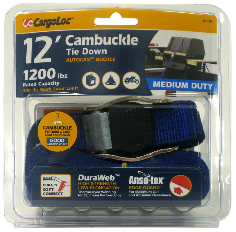 CargoLoc 1"e; x 12' x 1,200lbs Cambuckle Tie Down Strap, S-Hooks, 84036