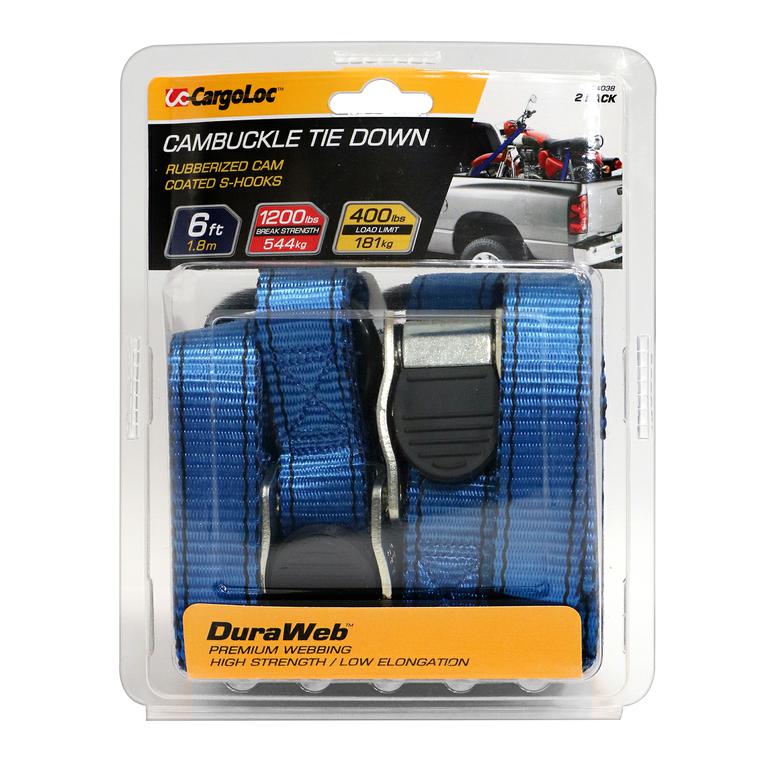 CargoLoc 2 Pc 1"e; x 6' x 1,200lbs Cambuckle Tie Down Straps, S-Hooks, 84038